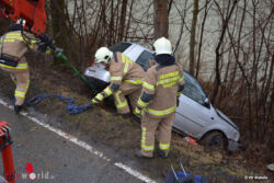 Dabei wurde das Fahrzeug von einem Baum gestoppt, welcher ein schlimmeres Ausmaß des Unfalles verhinderte. Um 11:04 Uhr wurden die Einsatzkräfte der Feuerwehr Hallein alarmiert. Sofort nach dem Eintreffen der ersten Kräfte wurde das Fahrzeug gesichert, ein Erstzugang zur verletzten Person geschaffen, diese bis zum Eintreffen des RK betreut und der Brandschutz errichtet.