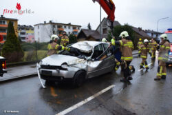 Nach der Erstversorgung durch die anwesenden Kräfte des Roten Kreuzes bzw. des Notarztes wurde die verletzte Person über das Heck des Fahrzeuges mittels Schaufeltrage gerettet um dem RK für den Abtransport ins Krankenhaus übergeben.