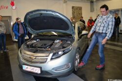 Thema des ersten Abends war ein Seminar der Firma Weber-Hydraulik betreffend Einsatztaktiken und Menschenrettung bei Elektrofahrzeugen. Nach einer theoretischen Einführung wurde praxisnah an einem von der Fa. Mairhuber zur Verfügung gestellten E-Fahrzeug die Vorgangsweise bei stromführenden Teilen im Auto geübt.
