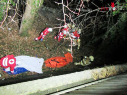 Im Zuge der gemeinsamen Erkundung mit der Polizei konnte eine Person im Uferbereich, ca. 50 Meter südlich der Erzherzog Johann Brücke, lokalisiert werden. Unverzüglich wurde die Person auf Murböschung gesichert und vom ÖRK erstversorgt. Mittels Rettungstrage und Seilsicherung durch die Höhenretter der BF Graz wurde die verletzte Person aus dem unwegsamen Gelände in Sicherheit gebracht und dem ÖRK zur weiteren Versorgung übergeben.