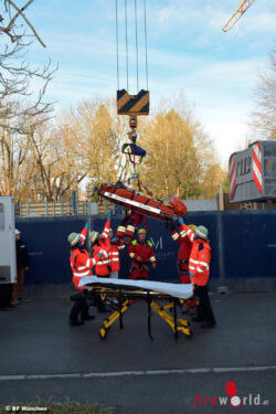 MÜNCHEN (BAYERN): Bei einem Unfall auf einer Baustelle ist am Morgen des 8. Februar 2016 in München ein Bauarbeiter schwer verletzt worden. Aufgrund der beengten Verhältnisse gestaltete sich die Rettung schwierig.