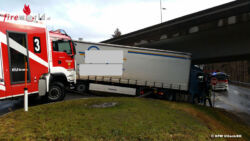 Die Brückenunterführung war für den Lkw zu niedrig, er blieb mit dem Führerhaus auf der abschüssigen Abfahrt von der B100 in dieser stecken. Mittels der Seilwinde des Rüstlöschfahrzeuges der Hauptfeuerwache Villach konnte der festsitzende Lkw-Zug aus der misslichen Lage befreit werden, berichtet Hauptbrandmeister Bernhard Selan von der Hauptfeuerwache Villach.