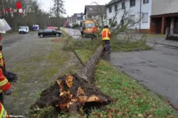 WEINGARTEN (DEUTSCHLAND): Zu insgesamt drei Einsatzstellen wurde die Feuerwehr Weingarten am Montag, 8. Februar 2015, innerhalb von 30 Minuten gerufen. Das Sturmtief Ruzica, welches über Deutschland zog, verursachte durch seine Stärke, dass auch in Weingarten die Bäume nicht mehr der Gewalt standhalten konnten.