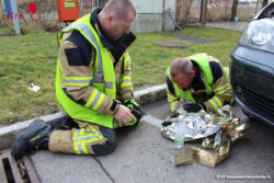 Kurz nach der Alarmierung konnte das RLF Vösendorf rasch am Einsatzort eintreffen. Von der Fahrerin wurde der Feuerwehr mitgeteilt, dass die Katze mit ihren Hinterfüßen im Motorraum bzw. dem Keilriemen feststeckte. Sofort wurde mittels Rettungsmesser der Keilriemen durchtrennt und die Katze so schonend wie möglich aus dem Motorraum befreit.