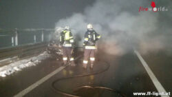 Bei der Betriebsumkehre Unterwald stellte sich heraus, dass es sich um einen Fahrzeugbrand bei Baukilometer 213,5 handelte. Prompt rüstete sich der Angriffstrupp mit Atemschutz aus und führte einen Löschangriff mittels HD-Rohr durch. Nach kurzer Zeit konnte der Brand gelöscht werden. Am Fahrzeug entstand Totalschaden. Der Einsatzort wurde durch die Feuerwehr Ligist abgesichert, sowie aufgrund der Dunkelheit ausgeleuchtet.