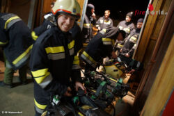 Die Atemschutzgeräteträger erwartete ein ausgeklügelter Hindernisparcour im Feuerwehrhaus. Es galt Barrieren wie Kraftfahrzeuge, Paletten, Tische usw. zu überwinden. Insgesamt benötigte man cirka 20 Minuten für den hervorragend präparierten Parcour. Alle Atemschutzgeräteträger konnten die Strecke bravourös bewältigen.