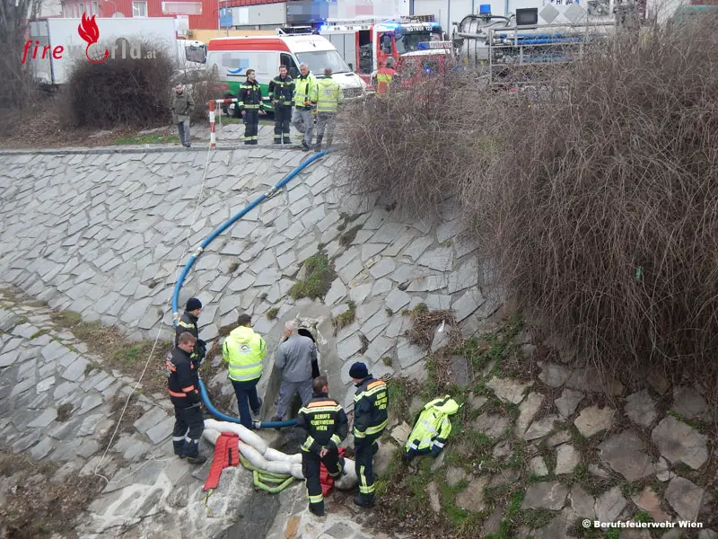 WIEN, LIESING: Entsorgtes Öl sorgte am 15. Februar 2016 für einen mehrstündigen Einsatz der Wiener Berufsfeuerwehr sowie weiteren Abteilungen der Stadt Wien.