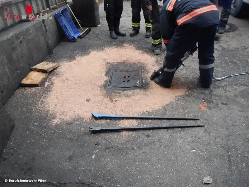 WIEN, LIESING: Entsorgtes Öl sorgte am 15. Februar 2016 für einen mehrstündigen Einsatz der Wiener Berufsfeuerwehr sowie weiteren Abteilungen der Stadt Wien.