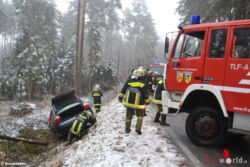 PENK-ALTENDORF (NÖ): Um 10:25 Uhr des 17.2.2016 wurden die Feuerwehren Penk Altendorf und St. Valentin-Landschach zu einer Fahrzeugbergung nach Verkehrsunfall auf die Forststraße alarmiert. Ein Lenker kam auf der schneematschigen Fahrbahn ins Schleudern und schlitterte folglich in den Straßengraben.