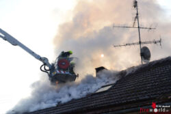 Erst durch den Einsatz mit dem neuen Hubsteiger konnte der Brand schnell unter Kontrolle gebracht werden und so die Gefahr für umliegende Gebäude gebannt werden. Verletzt wurde dabei glücklicherweise niemand, das Haus wurde aber durch den Brand komplett zerstört.