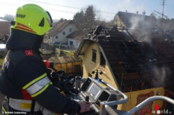 Zu Beginn wurde noch versucht, die Flammen durch einen Innenangriff zu löschen. Nachdem aber keine Personen mehr in Gefahr waren und akute Einsturzgefahr begann, brach der Einsatzleiter diesen Innenangriff aus Sicherheitsgründen ab. „Es war nicht zu verantworten, die Atemschutzträger weiter im Haus löschen zu lassen. Die Wärmebildkamera zeigte bereits, dass es in der Decke brannte und es lösten sich auch schon Deckenteile“, so der Einsatzleiter Richard Rachbauer.