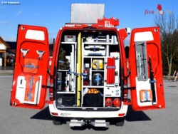 Da das Fahrzeug auch für kleinere technische Einsätze genutzt werden soll, gehören eine Werkzeugkiste, ein Türöffnungsset, Kabel- u. Beleuchtungsmaterial, eine ausziehbare Leiter sowie Erste-Hilfe-Ausrüstung und ein Spineboard zur Beladung.