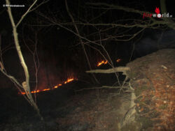 VÖCKLABRUCK (OÖ): Die Freiw. Feuerwehr Vöcklabruck wurde um 18.03 Uhr des 22. Februar 2016 zu einem Waldbrand im Bereich Altmannsberg/Schlierwand gerufen. Mitten im Wald brannte es auf ca. 30 m2 Fläche.