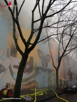 Auf Grund der starken Wärmeentwicklung, gestaltete sich das Vorgehen aber äußerst schwierig. Mit mehreren Lüftern wurde der Brandrauch aus dem verwinkelten Gebäude gedrückt. Weil schnell klar wurde, dass mit einer längeren Einsatzdauer zu rechnen ist, wurden die Löschzüge Altstadt, Ückendorf und Erle Süd, der freiwilligen Feuerwehr, ebenfalls zur Einsatzstelle entsandt.