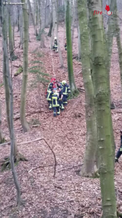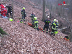 KÖNIGSTETTEN (NÖ): Am 22.02,2016 wurde die Freiw. Feuerwehr Königstetten um 16:37 Uhr zu einer Hilfeleistung für das Rote Kreuz alarmiert. Ein Forstarbeiter wurde im extrem steilem Gelände durch einen herabfallenden Ast unbestimmten Grades verletzt.