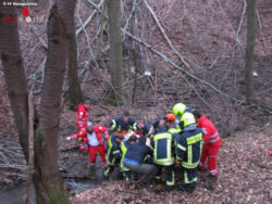In Absprache mit der zwischenzeitlich eingetroffenen Notärztin, wurde der Verletzte mittels Schaufeltrage in die Korbtrage vom KRFA-S verbracht und zum Abtransport stabilisiert. Anschließend wurde der Patient vorsichtig und schonend den steilen Hang hinunter über das Bachbett gehoben, danach die Uferböschung wieder hinaufgetragen und dem Rettungsdienst zum Abtransport ins Donauklinikum Tulln übergeben.