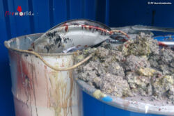 Wiederum unter Verwendung von schweren Atemschutz und der Schutzstufe 2 wurde an dem Deckel- Verschluss des Fasses eine Leine angebracht und dieses aus sicherer Entfernung bzw. Deckung geöffnet, wobei es zu einer spontanen Druckentspannung die mit einem lautem Knall wahrzunehmen war, kam.