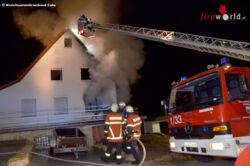 Bei dem Brandobjekt handelt es sich um ein zweistöckiges Wohnhaus aus den 1950er Jahren. Die Alarmierung erfolgte um 02.35 Uhr. Gebrannt hat das Erdgeschoß, das erste Obergeschoss und das Dachgeschoß. Die Feuerwehr öffnet derzeit, 4.40 Uhr, die Dachhaut auf der zweiten Dachhälfte um etwaige Glutnester abzulöschen. Gegen 05.45 Uhr wurde ein Angriffstrupp beauftragt das komplette Gebäude nach der vermissten Person nochmals zu durchsuchen. Sie fanden jedoch keine weiteren Personen.