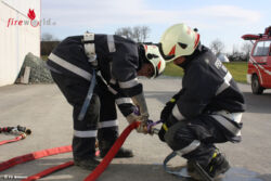 Bgld: Bildeiner Feuerwehr zeigt ihr Wissen bei der Ausbildungsprüfung Löscheinsatz