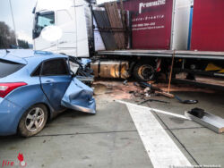 Stmk: Pkw kracht bei Rastplatzausfahrt mit voller Wucht gegen geparkten Lkw-Zug