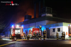 Beim Eintreffen der Löschmannschaften konnte ein ausgedehnter Brand im Bereich des Dachstuhls der Biomasseheizung festgestellt werden. Die Flammen schlugen bereits aus dem Dach und drohten auf weitere Gebäudeteile überzugreifen.