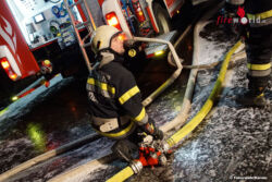 Kurz nach 1:15 Uhr heulten heute Dienstag, 1.3.2016, die Sirenen der Feuerwehr der Stadt Feldbach. „Rauchentwicklung im Heizwerk“ lautete zunächst die Alarmmeldung. Noch während der Anfahrt der ersten Einsatzkräfte gingen weitere Notrufe bei der Landesleitzentrale der Feuerwehr in Lebring ein – Feuer schlug bereits aus dem Dach. Sofort wurde die Alarmstufe erhöht und die Feuerwehren Gniebing, Mühldorf und Raabau alarmiert.