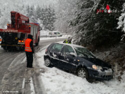 Kaum wieder eingerückt wurde der Bezirksalarm und -warnzentrale Villach Stadt über Notruf ein Verkehrsunfall auf der Autobahnabfahrt Warmbad Villach gemeldet. Ein Pkw war ins Schleudern gekommen und im Straßengraben gelandet. "Gemeinsam mit der FF Gödersdorf musste das Auto mit dem Kranfahrzeug der Hauptfeuerwache aus dem Schnee gezogen werden, da die Gefahr von Folgeunfällen in der unübersichtlichen Kurve bestand", berichtet Löschmeister Hausmann Helmut von der Hauptfeuerwache Villach. Verletzt wurde niemand.