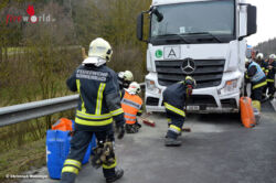 Diese hielt gerade noch stand, damit der tonnenschwere Lkw nicht auf die Gegenfahrbahn geriet. Jedoch wurde der Dieseltank aufgeschnitten und der gesamte Treibstoff verteilte sich auf den beiden Spuren der Autobahn.