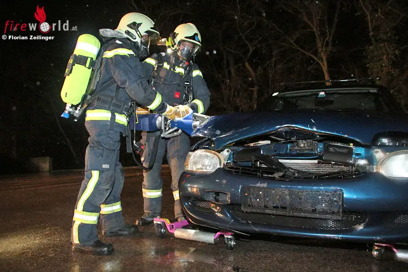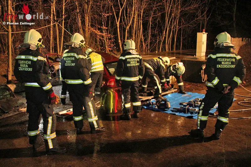 Nö: Gesamtübung FF Maria Enzersdorf: Verkehrsunfall mit unerwarteten Zusatzaufgaben