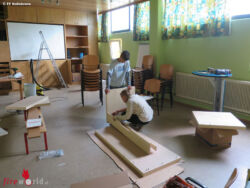 Die nächsten Arbeiten waren das Aufhängen diverser Urkunden und Bilder von unserer Feuerwehrjugendgruppe sowie die vorhandenen Seitenteile an den Fenstern abmontieren, waschen und etwas aufnähen. Nachdem nun die Tische und Sessel aufgestellt sind, konnte der neue Jugendraum endlich voll genutzt werden.