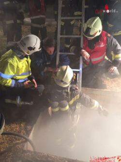 Oö: Premiere für Hackschnitzelabsauggebläse bei Bunkerbrand in Tragwein