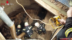 Da aber zu vermuten war, dass dieses Glutnest bis unter eine Holzkonstruktion gehen würde, wurde vom Einsatzleiter HBI Daniel Schützenhofer angeordnet, den Bunker leer zu räumen. Dabei war das Hackschnitzelabsauggebläse der Feuerwehr Hinterberg, das seine Feuertaufe erhielt, eine sehr wertvolle Hilfe. Nach rund einer Stunde war der Bunker entleert und man konnte beginnen, die Unterkonstruktion abzutragen.