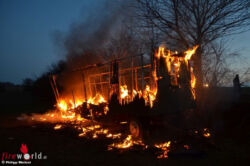„Die Löschwasserversorgung wurde durch einen Pendelverkehr mit wasserführenden Einsatzfahrzeugen sichergestellt“, so ein Feuerwehrsprecher. Wie die Polizei informierte, handelte es sich bei dem Wohnwagen um einen umgebauten Tieflader mit Kastenaufbau, der von einem Hobbyangler eines nahegelegenen Fischteiches als Unterstand genutzt wurde. Nach ersten Ermittlungen der Polizei ist Brandstiftung nicht auszuschließen.