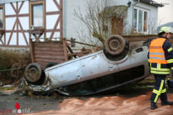 Der Mann kam in einer Linkskurve nach rechts von der Fahrbahn ab, fällte das Ortsschild von Unter-Sorg und prallte gegen einen Wasserdurchlass. Durch den Aufprall wurde das Unfallauto in die Luft katapultiert und schleuderte kopfüber gegen den hölzernen Gartenzaun eines Grundstücks. Ein Notarzt sowie ein Rettungsteam versorgten den Verunfallten, der in ein Krankenhaus eingeliefert wurde. Die Feuerwehren der Gemeinde Schwalmtal und der Stadt Alsfeld wurden ebenfalls zur Rettung des Mannes alarmiert, er konnte sich jedoch mit eigener Kraft aus dem Unfallwrack befreien. „Unsere Einsatzkräfte haben die Unfallstelle abgesichert und auslaufende Betriebsstoffe mit Bindemitteln aufgenommen“, so Feuerwehrsprecher Gerhard Georg. Die Ursache für den Unfall ist noch unklar, eine Streife der Polizeistation Alsfeld nahm die Ermittlungen auf. Den entstandenen Sachschaden schätzten die Polizeibeamten vor Ort auf einige Tausend Euro.
