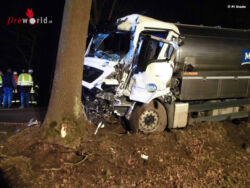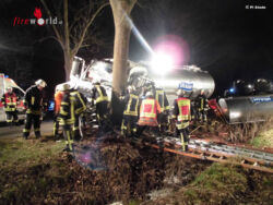 Deutschland: Reh ausgewichen: Milchtankwagen kracht gegen Baum, Lenker eingeklemmt – 90 minütige Rettungsaktion