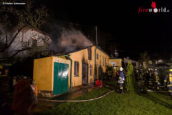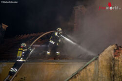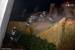 In der Zwischenzeit wurden auch die Bewohner des betroffenen Gebäudes durch ihre Alarmanlage geweckt und retteten sich ins Freie. Um 00:08 Uhr wurde die örtliche Freiwillige Feuerwehr Großau und die FF Gainfarn zu einem B2 Zimmerbrand alarmiert. Kurz nach Eintreffen der Feuerwehr stand jedoch bereits der komplette Wirtschaftstrakt des Wohnhauses in Vollbrand und der Brand hatte auch Teile des Dachstuhls erfasst.