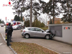 Nach dem Zusammenstoß krachte ein Lenker mit seinem PKW mit voller Wucht in einen Stromtransformator der EVN. Der Lenker wurde mit dem Rettungswagen des Roten Kreuz Hollabrunn mit Verletzungen unbestimmten Grades in das Landesklinikum Hollabrunn gebracht. Die Einsatzkräfte der Freiwilligen Feuerwehr Hollabrunn entfernten mit dem Wechselladefahrzeug den beschädigten PKW von der Verkehrsfläche und stellten diesen an einem definierten Abstellplatz gesichert ab.