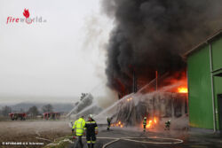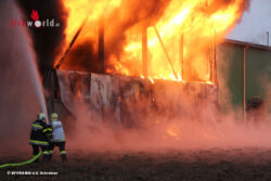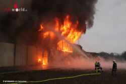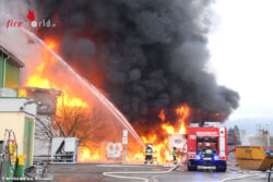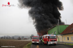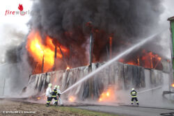 MURECK (STMK): Heute Freitag, 11. März 2016, um 06:46 Uhr, meldeten mehrere Notrufer den Brand einer Lagerhalle in Mureck. Beim Eintreffen der Feuerwehren stand diese in Vollbrand. Zur Bekämpfung des Feuers stehen derzeit über 100 Einsatzkräfte von 12 freiwilligen Feuerwehren mit 25 Löschfahrzeugen im Einsatz. Um 14.00 Uhr war „Brand aus“.