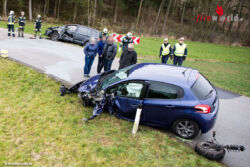 NIEDERNEUKIRCHEN (OÖ): Bei einem Verkehrsunfall am Samstagvormittag, 12. März 2016, auf der Niederneukircher Straße in Obereglsee waren zwei Fahrzeuge zusammengestoßen, dabei wurden zwei Personen verletzt.