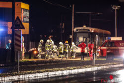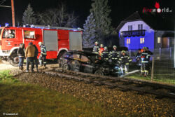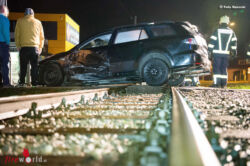 VORCHDORF (OÖ): In Vorchdorf (Bezirk Gmunden) wurde Sonntagabend, 13. März 2016, ein Auto auf einem Bahnübergang von einer Lokalbahngarnitur erfasst und schwer beschädigt. Der Unfall ereignete sich am Bahnübergang der Caroline-Forstinger-Straße.
