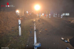 Beide Fahrzeuge wurden durch die Kollision in den Seitenraum geschleudert und mussten in der Folge auch mit einem Spezialkran geborgen werden. Ebenfalls im Rettungs- und Bergungseinsatz waren Einsatzkräfte verschiedener örtlicher Feuerwehren. Die Bundesstraße 216 war im Verlauf des Morgens für die Bergungsmaßnahmen voll gesperrt. Den Sachschaden beziffert die Polizei aktuell mit mehr als 100.000 Euro. Für die weiteren Ermittlungen zum Unfallhergang zog die Polizei auch einen Gutachter mit hinzu.