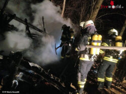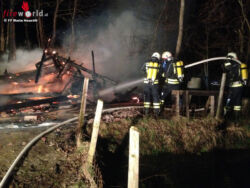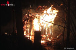 MARIA NEUSTIFT (OÖ): Zum Brand einer Fischerhütte wurden am Montag, 14. März 2016, gegen 01.00 Uhr die Feuerwehren der Gemeinde Maria Neustift und Ertl (NÖ) alarmiert. Als die ersten Einsatzkräfte unter der Leitung von Brandrat Martin Scharrer an der Einsatzstelle eintrafen, stand die Fischerhütte in Holzbauweise schon im Vollbrand.
