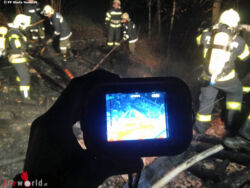 Mithilfe einer Wärmebildkamera wurde noch nach versteckten Glutnestern gesucht und diese sofort abgelöscht.