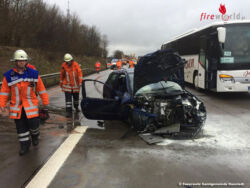 Deutschland: Verkehrsunfall auf der A7 – Fahrzeug fängt nach Aufprall Feuer / drei Personen verletzt