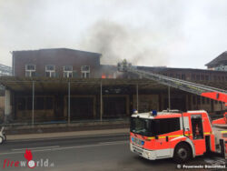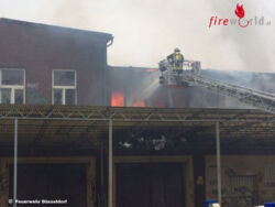 Am Dienstagmittag wurde der Löschzug erneut zur Fringsstraße alarmiert. Bereits auf der Anfahrt war dichter, schwarzer Rauch und Flammen aus einer Halle erkennbar. Diesmal stand ein ca. 30 qm großer Raum im 1. Obergeschoss der Verwaltungsetage im Vollbrand. Die umfangreichen Löschmaßnahmen über die Drehleiter und über das benachbarte Dach ins Gebäude brachten schnell Erfolg. Schnell wurde klar, dass sich keine Personen mehr im Gebäude aufhielten. Die anschließenden Lüftungsmaßnahmen und Glutnester im Dachbereich dauerten bis in den Nachmittag hinein. Durch den Feuerwehreinsatz musste zeitweilig die Zufahrt in den Hafen für den Autoverkehr durch die Polizei gesperrt werden. Es kam zu erheblichem Rückstau in beiden Richtungen. Nach ca. drei Stunden war der Einsatz beendet.