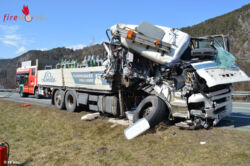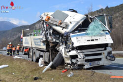 Tirol: Verkehrsunfall mit drei Lkw – zwei davon Gefahrguttransporter – und einem Pkw auf A12 bei Stams