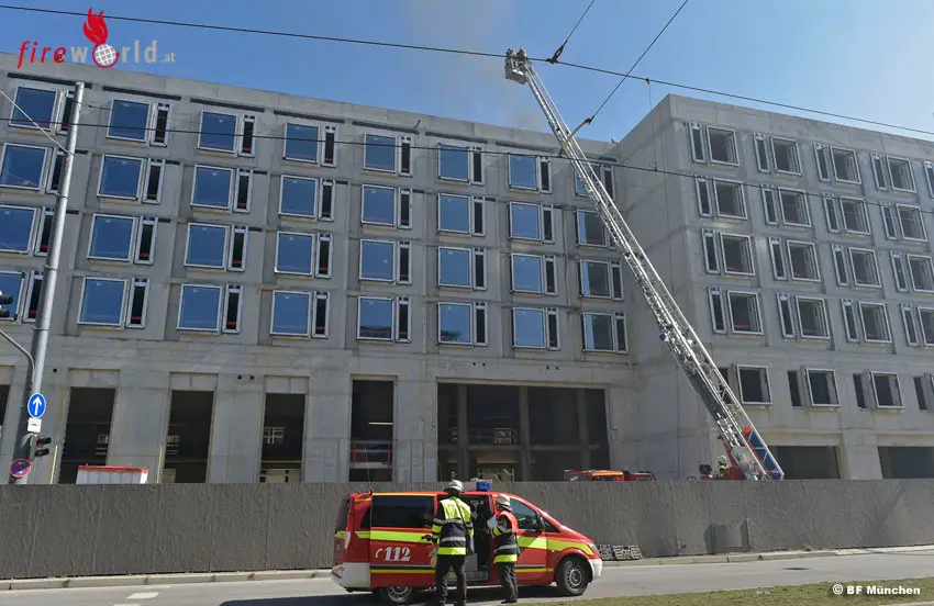 Bayern: Brennender Bitumenkessel auf Flachdach eines Rohbaus in München