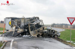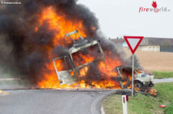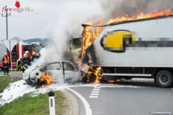 Oö: Lkw und Pkw nach Unfall in St. Florian in Flammen: Autolenker verbrennt im Wrack (+Video)