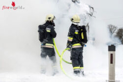 Beim Eintreffen der Feuerwehren standen beide Fahrzeuge im Vollbrand. Unter Verwendung von schwerem Atemschutz und Löschschaum wurde ein umfassender Löschangriff gestartet. Die Flammen, welche bereits auf die Ladung des Lkws – Postpakete und Stückgut – übergegriffen hatte, konnten rasch abgelöscht werden. Nachdem die Tatortgruppe des LKA ihre Arbeit abgeschlossen hatte, wurde mit der Bergung des Toten begonnen.