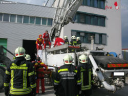 Nö: Feuerwehreinsatz nach schwerem Arbeitsunfall mit Lkw-Betonpumpe in Langenzersdorf